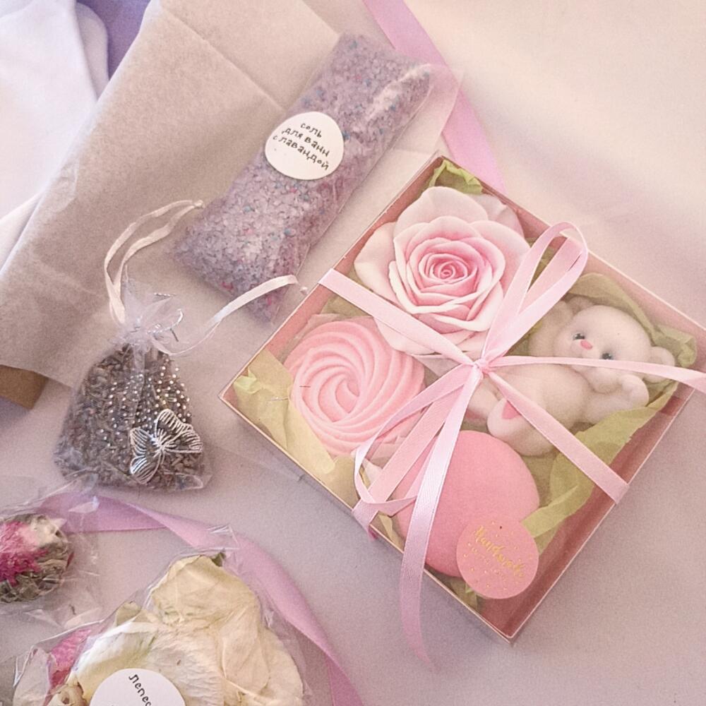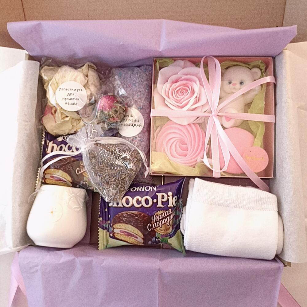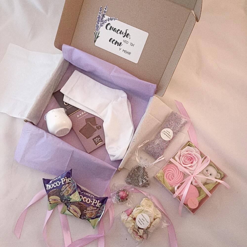 Лимитированный набор подарков для особого случая, который оставит приятные воспоминания. Набор подойдет для ценителей изящества и нежности. От упаковки до состава подарок собран с любовью своими руками❤В подарочный бокс входит: Соль для ванны с ароматом лаванды и пенными гранулами – лучший друг утра, дня и вечера. Уход за кожей, ароматерапия и спокойствие в одной упаковке – мы точно победим быстрый ритм жизни Набор красивого мыла в виде розы, милого мишки, пирожного макарон и зефирки с приятными ароматами розы и сладкого молока. Небольшой тканевый мешочек-саше с цветами лаванды Лепестки роз для ванны. Love is in the air Массажная свеча – очень приятное средство для ухода за собой. Тёплое расплавленное масло втирают в кожу, например после душа. Состав массажной свечи: масло ши, масло какао, масло бабассу, соевый воск, эфирное масло лаванды Женские хлопковые носочки (до 40 размера), достаточно плотные, приятные на ощупь, с большим содержанием хлопка. Зеленый чай Юй Лун Тао: чайные листья в форме бутона, при заваривании превращаются в хризантемуПодарок разбавят приятные дополнения (ведь так интересно, когда открываешь коробку, а там столько всего, что глаза разбегаются): Два Чокопай со смородиной Плитка тёмного шоколада Подарочная крафтовая упаковка с надписью Спасибо, что ты есть у меня!Подарите близким тепло и заботу одним правильным набором от Love&Post Наш нестандартный подарок придётся по душе каждой дочке, жене, маме, бабушке, любимой девушке или коллеге. Также поможем удивить отцов, дедушек, сыновей или внуков. Ведь пол и роль не важны, зато бывает так важно подарить чуточку внимания и тепла) А у нас есть все, чтобы помочь Вам с этим ❤Чтобы создать свой идеальный подарочный набор, Вы можете изменить состав или сделать свой эксклюзивный набор подарков:-добавить открытку в конверте или без, в которой мы напишем Ваше поздравление- выбрать имбирные пряники с поздравлениями или просто с красивой картинкой- дополнить подарок, положив в него: чай, брошь, украшения, сумку – шоппер, блокнот, макаронс, крем, маску для лица, мыло ручной работы – стараемся воплотить любые идеи- заменить то, что есть в набореДля этого пишите нам Если Вы добавляете позиции к набору, мы бесплатно поменяем упаковку на размер побольше и оформим в том же стиле, что и упаковка в товаре. Обязательно пришлëм фото по готовности К каждому заказу кладëм сладкий комплимент. Можем собрать набор, оформить коробку или крафтовую объëмную фигуру, подобрать подарки в цвет, сделать красивый креативный (необычный, оригинальный), романтичный, полезный (практичный) или шуточный (юмористический) набор на любую сумму индивидуально для Вашего торжества Сет подарков для женщин, для подростков, для женщины, подарок для жены, подарочный бокс для любимой, коробка с подарками для девушки, презент для коллеги, мамы, матери, бабушки. В качестве комплимента, презента, подарка, в женский день, на день рождения, годовщину, на год отношений, для праздника , роскошный подарок для важного события.
