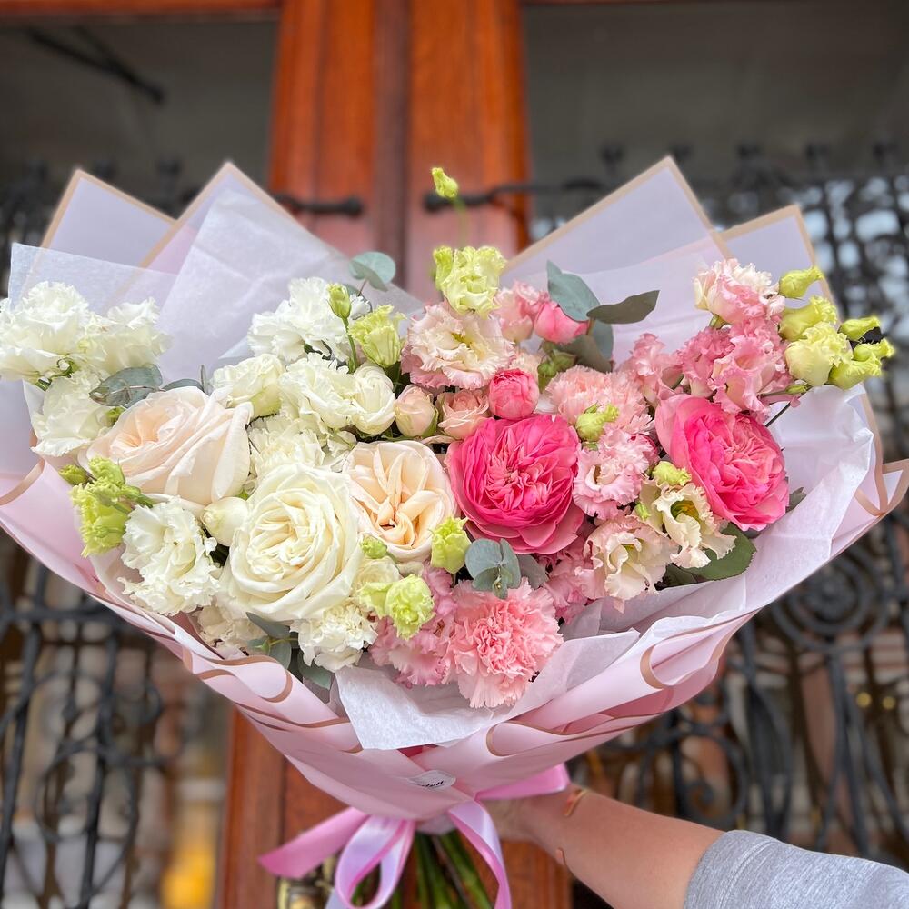 Категорий: Гвоздики, Кустовые розы, Лизиантусы, Пионовидные розы, Розы