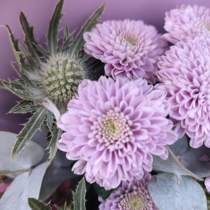 Альстромерии, Гвоздики, Кустовые розы, Лизиантусы, Розы, Хризантемы