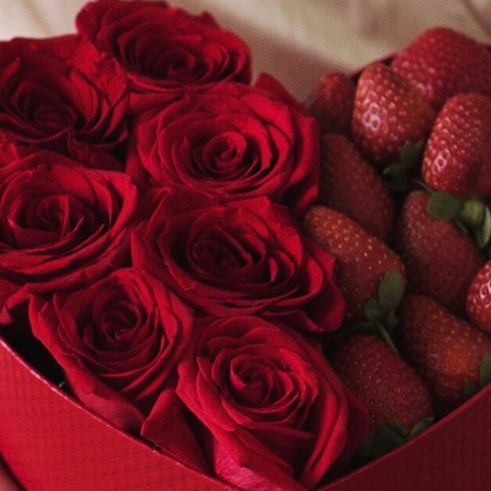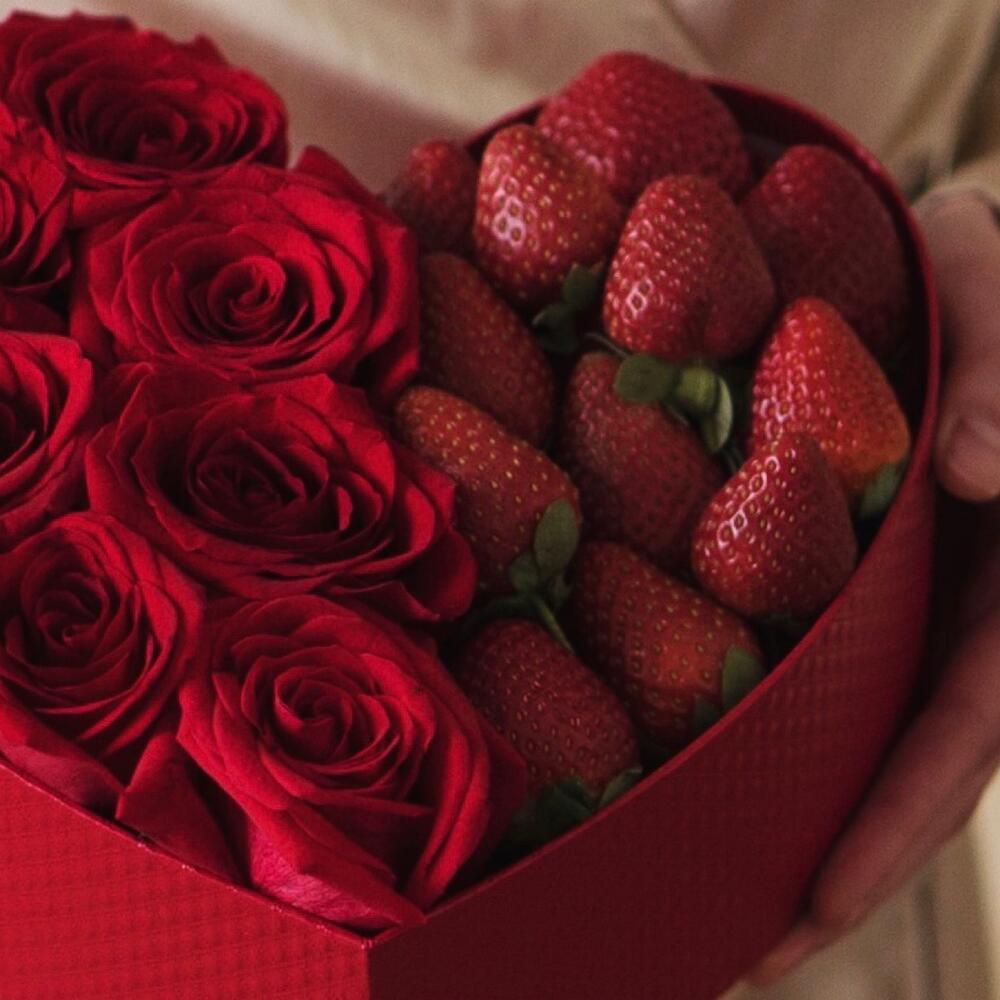 КлубникаРозыКоробка с цветами