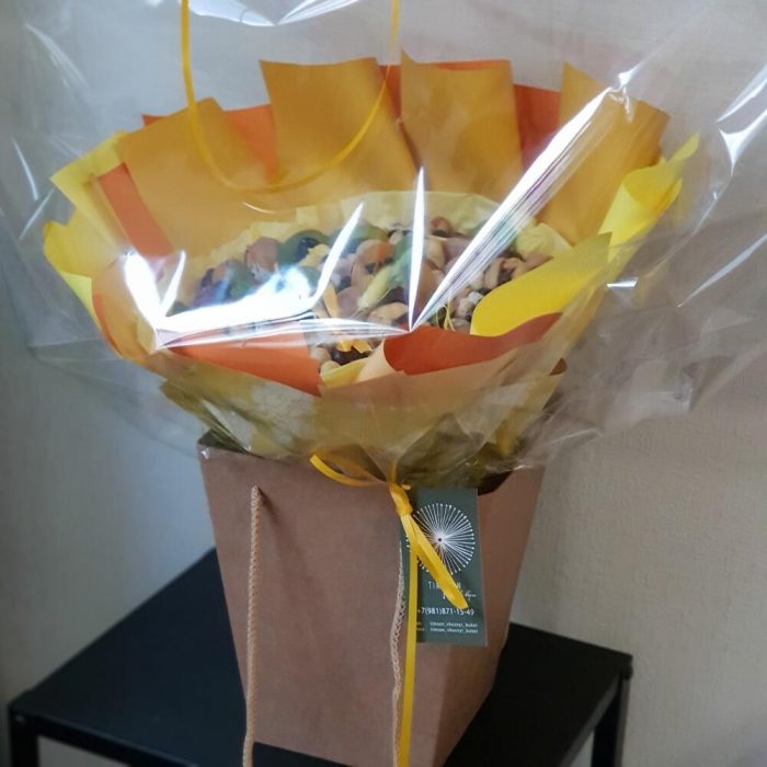 Орехи грецкие – 100 гр.орехи пекан – 30 гр.Орехи фундук – 25 гр.Фисташки – 15 гр.орехи миндаль – 30 гр.орехи макадамия – 20 гр.абрикос соленый косточка – 13 гр.арахис в скорлупе – 50 гр.ананас вяленый – 15 гр.Финики – 100 гр.Курага – 100 гр.Дыня – 40 гр.Чернослив – 50 гр.Инжир – 35 гр.Киви – 70 гр.Лагурус – 2 шт.коробка транспортировочная – 1 шт.