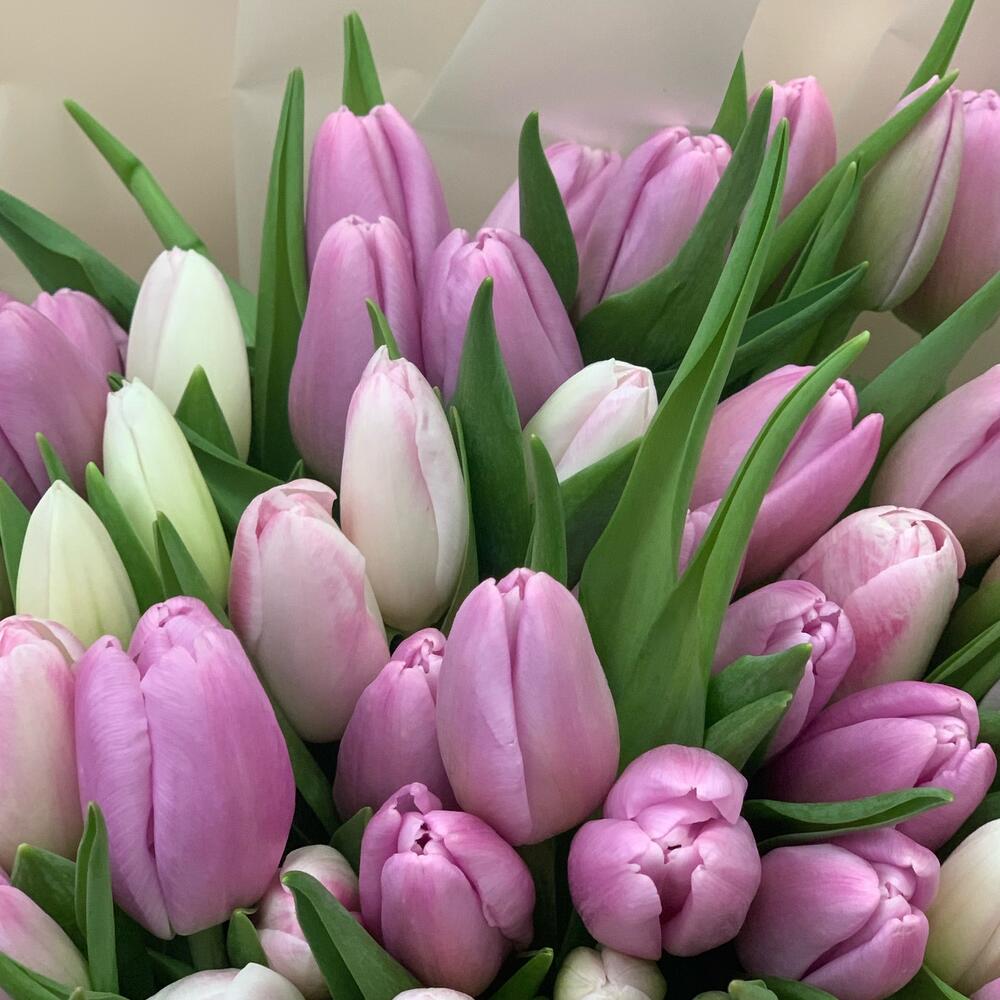 25 пионовидных сиреневых тюльпанов дабл прайс. Букет 200 Kimbirly Flowers