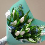 Тюльпан – 11 шт.Оксипеталум – 5 шт.Упаковка дизайнерская – 3 шт.Лента атласная – 2 шт.