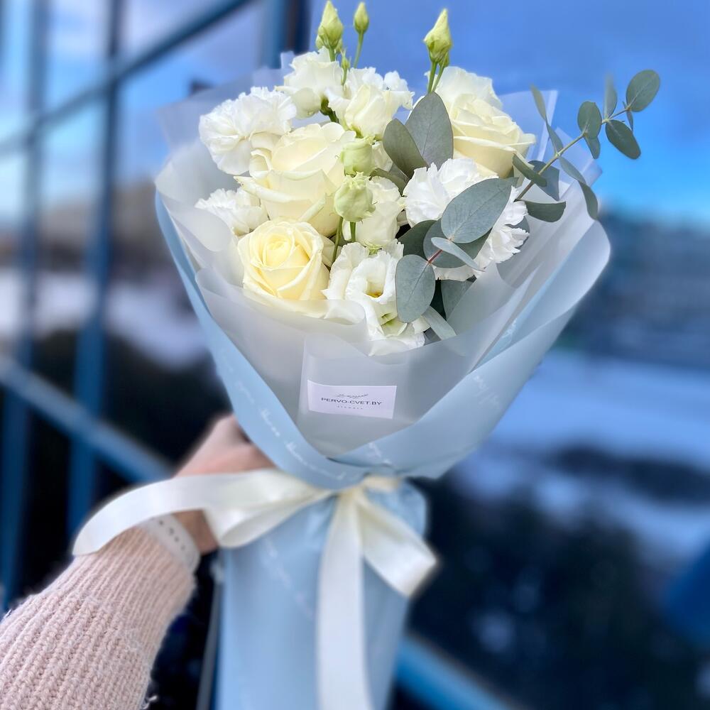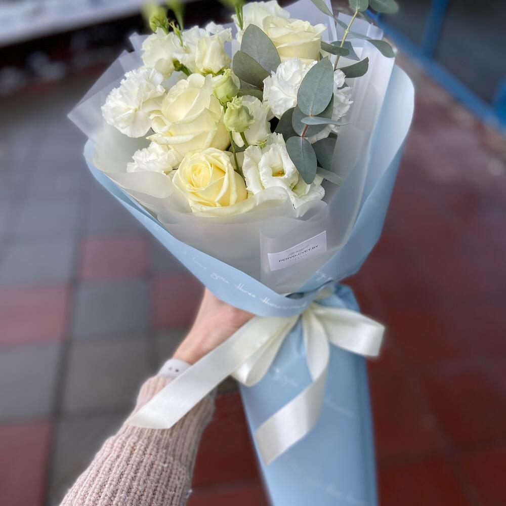 Альстромерии, Кустовые розы, Лизиантусы, Пионовидные розы, Розы, Ромашки