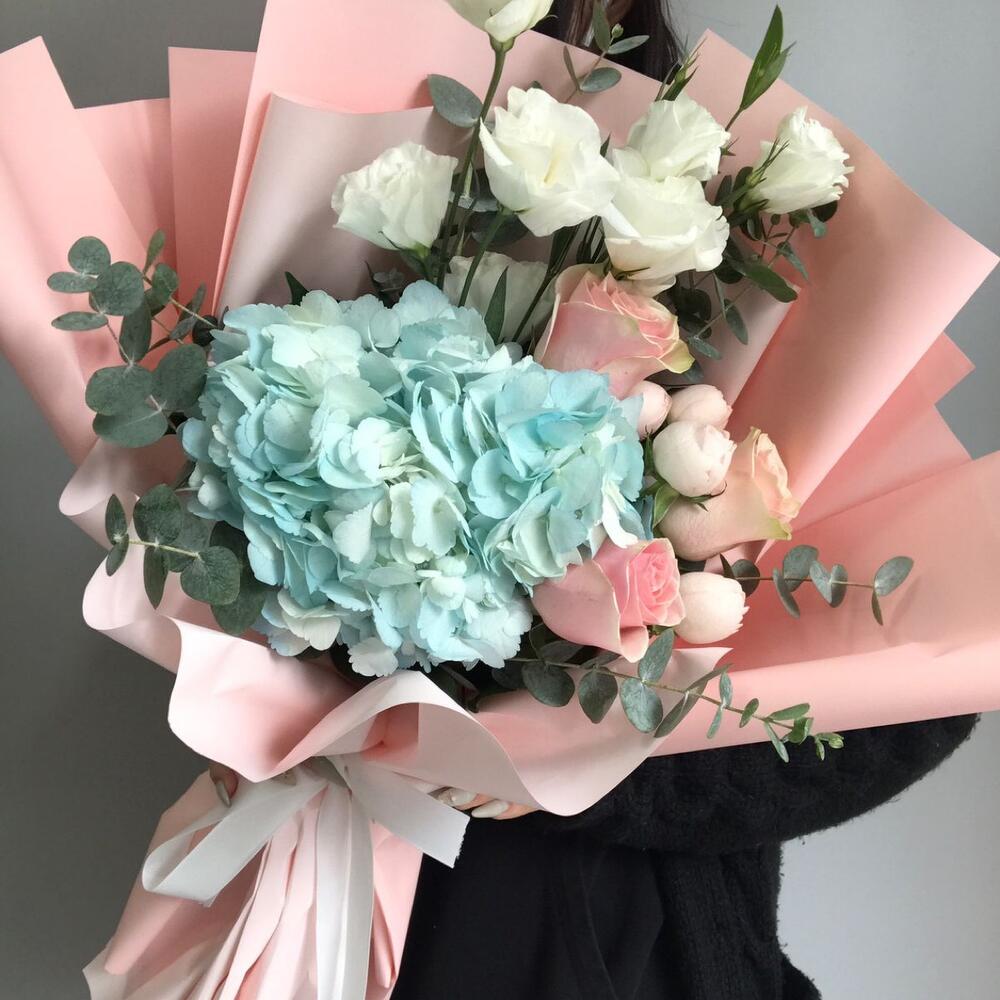 Гвоздики, Кустовые розы, Лизиантусы, Пионовидные розы, Розы